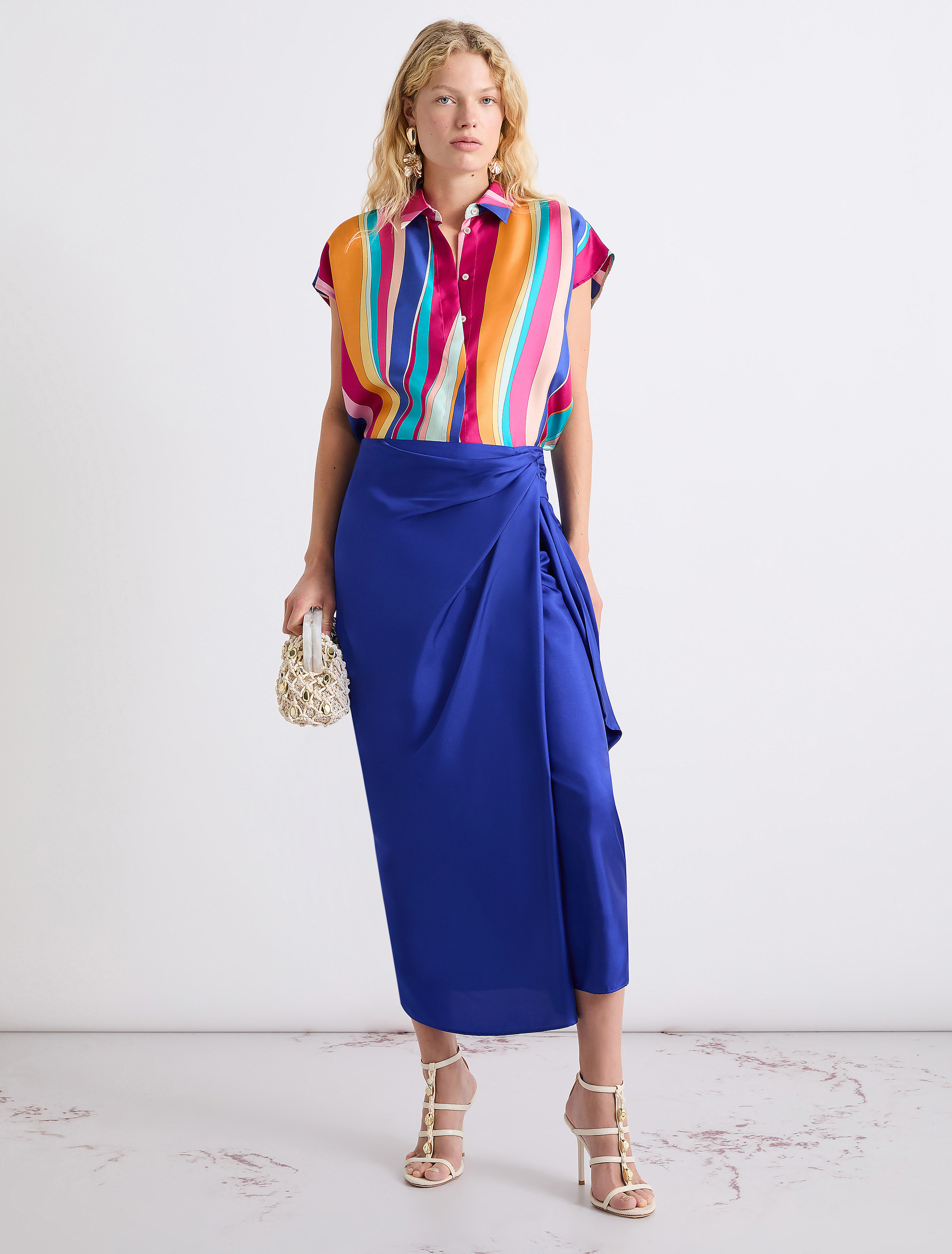 - Wrap-effect overlapping front panel with a side knot